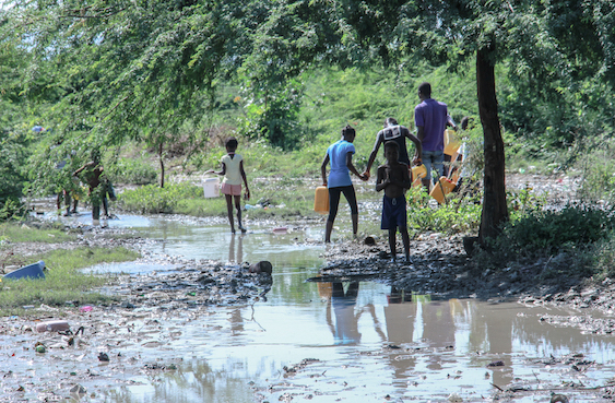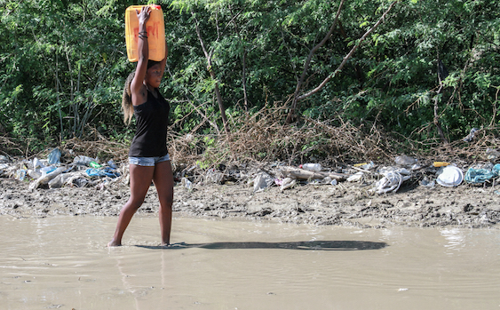 Ce sont également les mêmes corvées quotidiennes d’eau, au « village Lumane Casimir », aux pieds du Morne à Cabris, à vingt-cinq kilomètres au nord-est de la capitale haïtienne. Là, les camions citernes passent régulièrement. Les habitantes et habitants peuvent dépenser jusqu’à 400.00 gourdes par semaine (environ 4 euros ou une journée de salaire minimum en Haïti) pour remplir ce qu’ils appellent leurs « châteaux d’eau ».