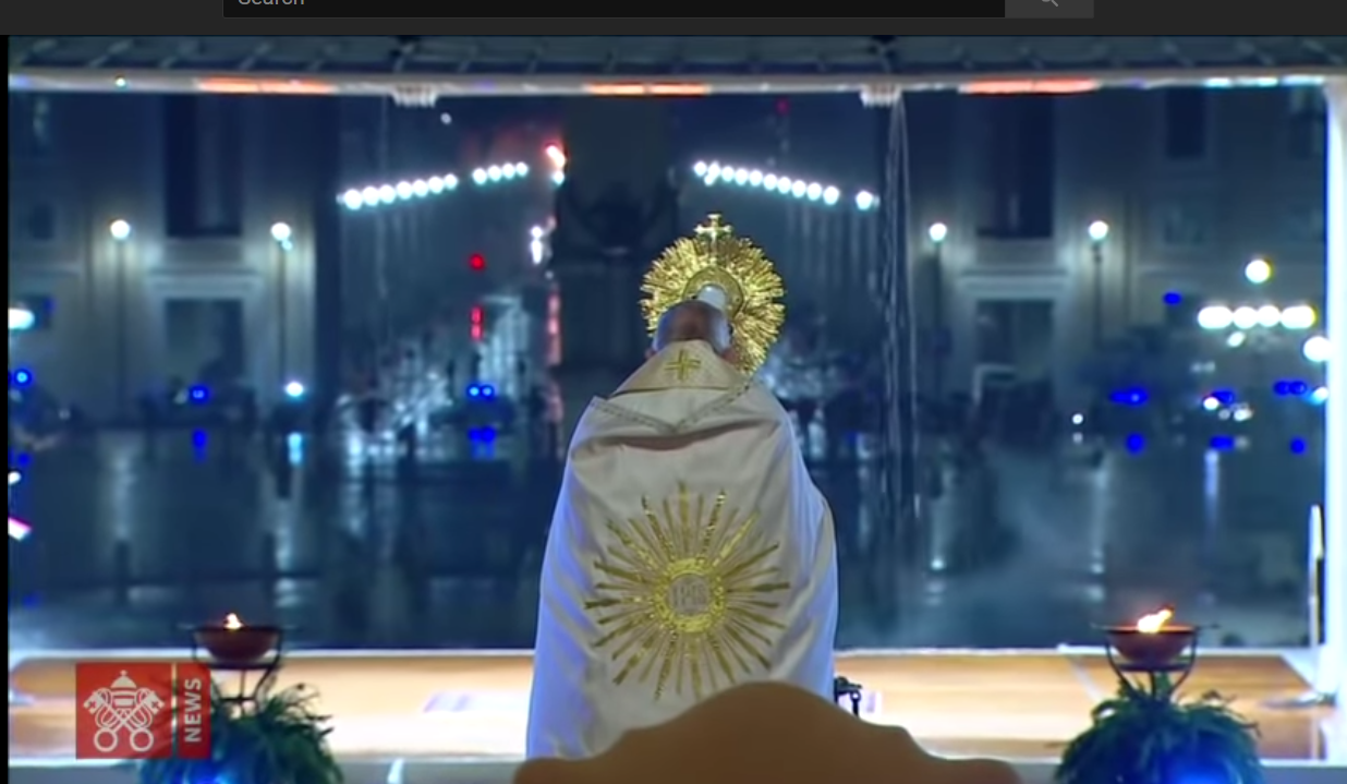 Le Pape François a présidé ce vendredi soir, depuis le parvis puis l’atrium de la basilique Saint-Pierre, un temps de prière marqué par l’écoute de la Parole de Dieu, suivi d’une homélie, d’une adoration du Saint-Sacrement et d’une bénédiction Urbi et Orbi à destination des personnes affectées par la pandémie actuelle de coronavirus.