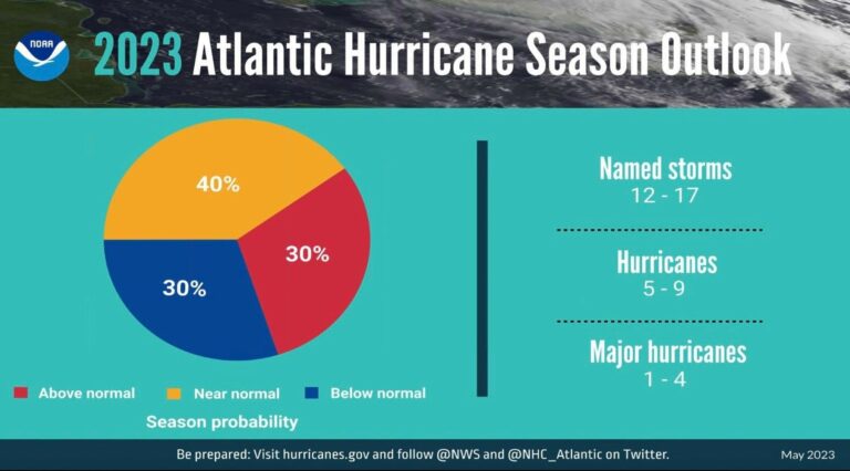 Pour cette année, le Centre de Prédiction Climatologique du Service Météorologique National de l’agence américaine de surveillance océanique et atmosphérique (NOAA) prévoit une saison cyclonique relativement normale. Comparée aux années précédentes, cette saison devrait être moins active en raison de plusieurs facteurs, notamment le retour du phénomène climatique El Niño dans la zone Atlantique. Avec ce phénomène, le développement des tempêtes pourrait suivre une trajectoire descendante en raison de sa capacité à affaiblir les activités cycloniques. Cependant, la manifestation d’El Niño va provoquer des vagues de chaleur qui augmenteront la température de l’air ambiant.