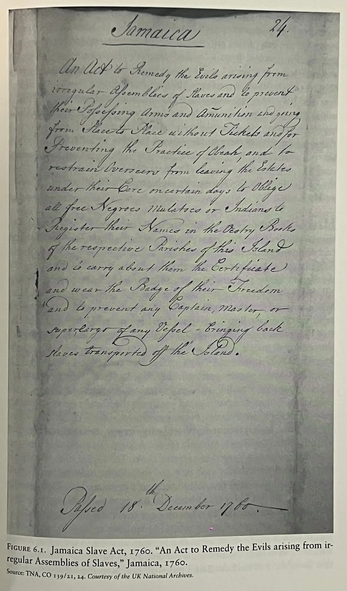 One of the most lasting impacts of Tacky’s war was how it reshaped colonial law and deepened control over the daily lives of enslaved Africans. In response, colonial authorities passed the Jamaica Slave Act on December 18, 1760, formally titled “An Act to Remedy the Evils arising from irregular Assemblies of Slaves.” According to Encyclopedia of Jamaican Heritage, Olive Senior notes that the uprising marked one of the first times the term “obeah” entered official colonial records. In response, colonial authorities passed the Jamaica Slave Act on December 18, 1760, formally titled “An Act to Remedy the Evils arising from irregular Assemblies of Slaves.”